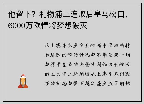 本文将围绕赵鹏对邵佳一的高度评价展开,探讨邵佳一的个人品质、性价比、以及他在中国足球中的核心作用。同时,文章还将分析赵鹏对于未来归化外援的建议,如何通过外援的加入提升球队的整体实力。本文将从邵佳一的人品与职业精神、性价比与市场价值、球队核心地位与影响力、以及归化外援对球队提升的可能性四个方面进行深入...